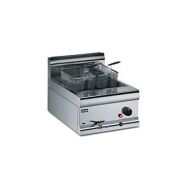 The deep fat fryer features a thermostatic control with a fail-safe cut-out, front drain taps and a deep cool zone to collect debris.